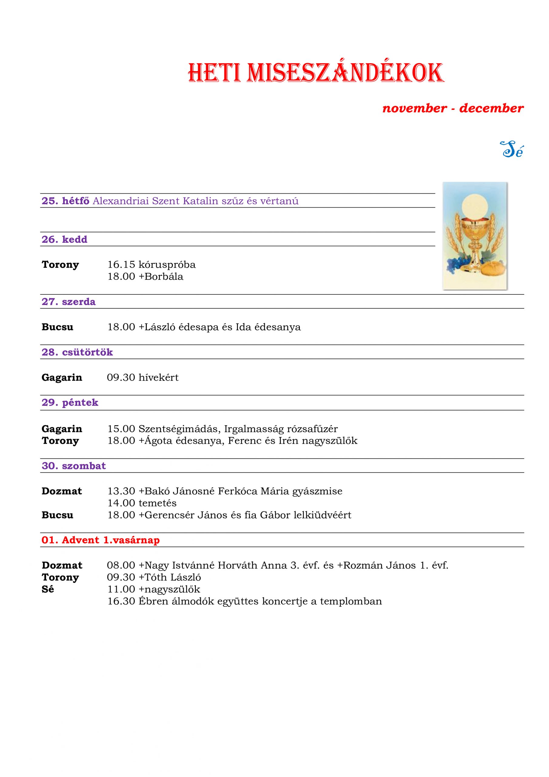 Egyházközségünkben az idei Adventben is elindítjuk a Szent Család járást. Kérem, hogy a szentmise után a sekrestyében iratkozzanak fel azok, akik részt szeretnének benne venni. Vannak még üres napok.