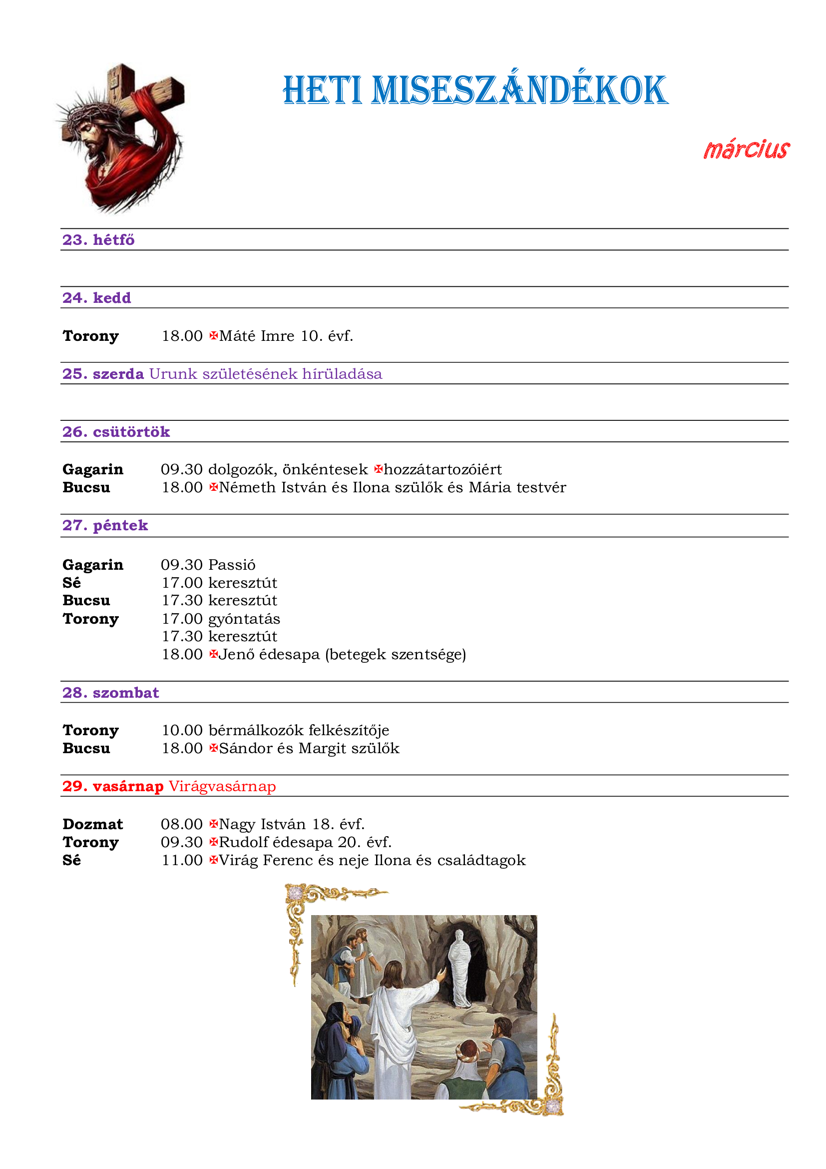 Nagyböjtben, pénteki napokon keresztutat imádkozunk, fél 6 órai kezdettel templomunkban.