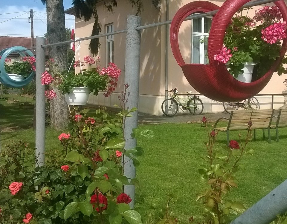 Nem fogynak ki a virágosítási ötletekből – és a használt autóabroncsokból se – Toronyban. Kovács György polgármester űtmutatásai szerint most felfüggeszthető virágtartókat készítenek a közmunkások.